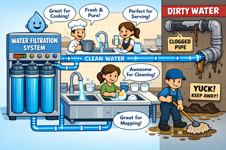 In addition to water filtration, maintaining proper plumbing is critical. Facilities often combine advanced filtration with commercial drain cleaning to prevent buildup and blockages that can compromise water quality or disrupt operations. With both clean water and clear drains, businesses can avoid common issues such as off-tastes, odors, or coloration in tap water. In food preparation and healthcare settings, this clean water is not only used for drinking but also for ingredient processing, sanitation, and medical procedures. Reliable filtration and regular commercial drain cleaning are vital for ensuring consistency and maintaining strict hygiene protocols.