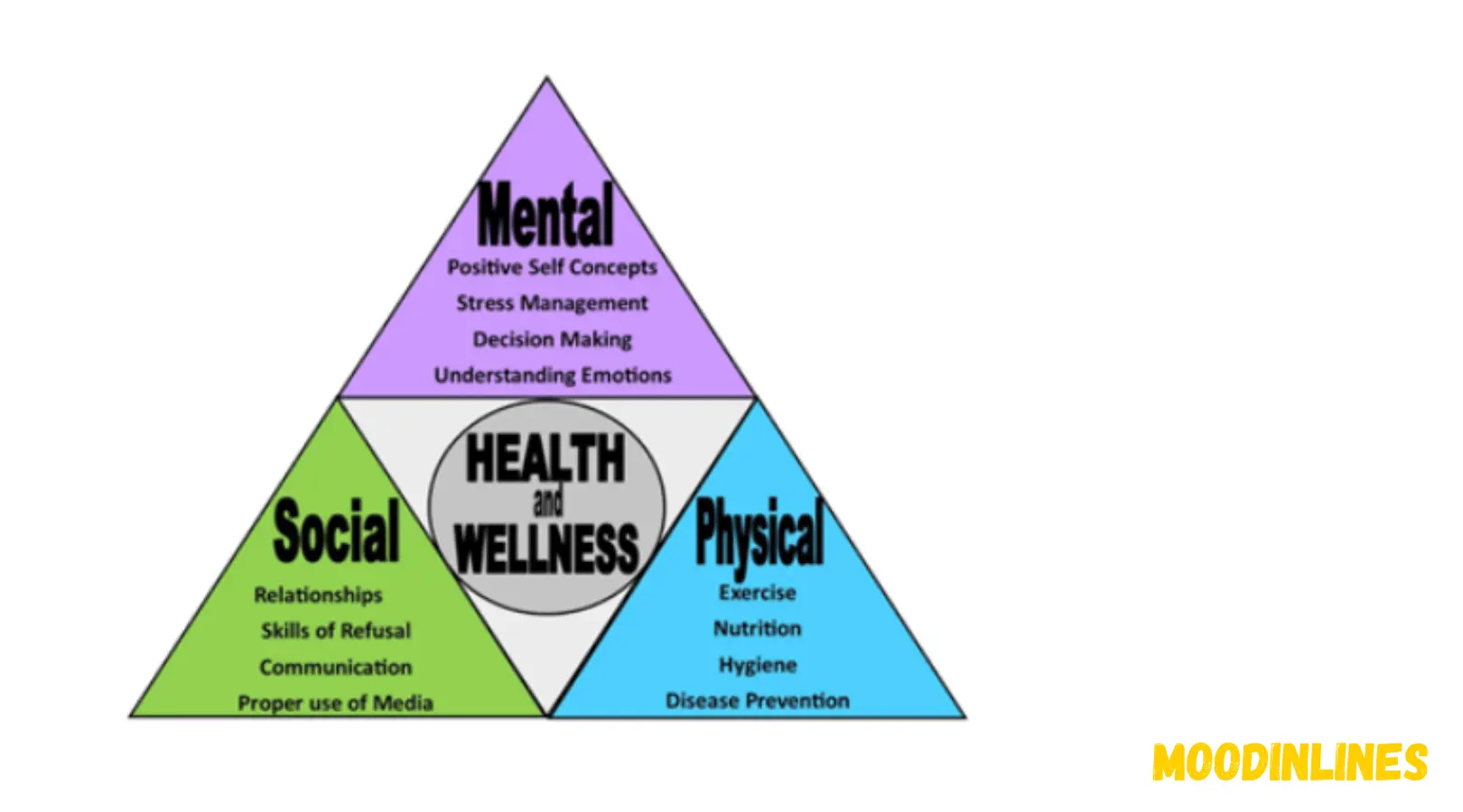 The Health Triangle (also known as the Wellness Triangle) is a visual model representing the three essential aspects of health — physical, mental, and social. Imagine a triangle where each side supports the others. If one side is weak, the entire structure becomes unstable. The same applies to your health — you cannot achieve true wellness without balancing all three components. For more details, please visit our blog moodinlines.com.